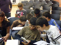O ateliê tinha como desafio conhecerem seis livros através de objectos, imagens e excertos. No final, os alunos puderam identificar-se (ou não) nos perfis de leitores que os animadores responsáveis pela actividade tinham estabelecido.