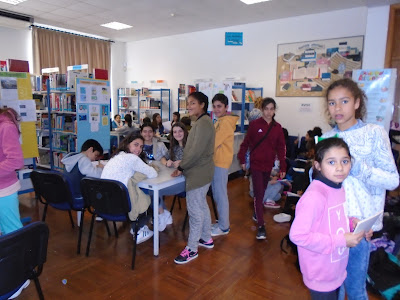 Hoje, no anfiteatro exterior, realizamos uma atividade de pré-leitura da obra "Os Piratas", no âmbito do projeto de leitura continuada que a BE está a desenvolver com uma turma do 6º ano da profª Lealdina Correia.