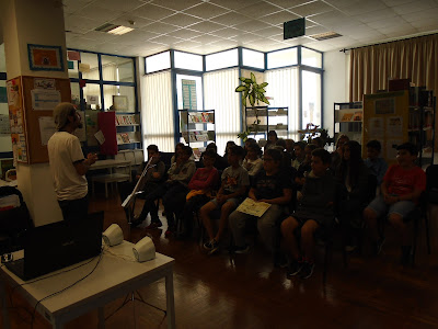 Encerrámos o ciclo de 10 sessões de poesia, dinamizadas pelo Tapê, com a turma do 5º A, que se fez acompanhar pela professora Isabel Viegas. A forma, peculiar, como Tapê aborda a poesia, é, sem dúvida, uma motivação para os nossos alunos e uma inspiração para quem assiste. Já estamos com saudades...