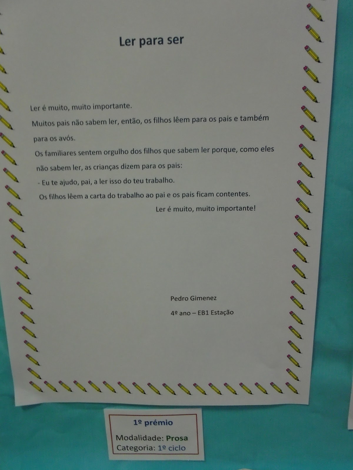 1º ciclo Helena Coelho, 4º B, EB1 Mãe Soberana, na modalidade Ilustração; Pedro Trindade, 4º B, EB1 Mãe Soberana, na modalidade Poesia; Pedro Gimenez, 4º ano, EB1 Estação, na modalidade Prosa