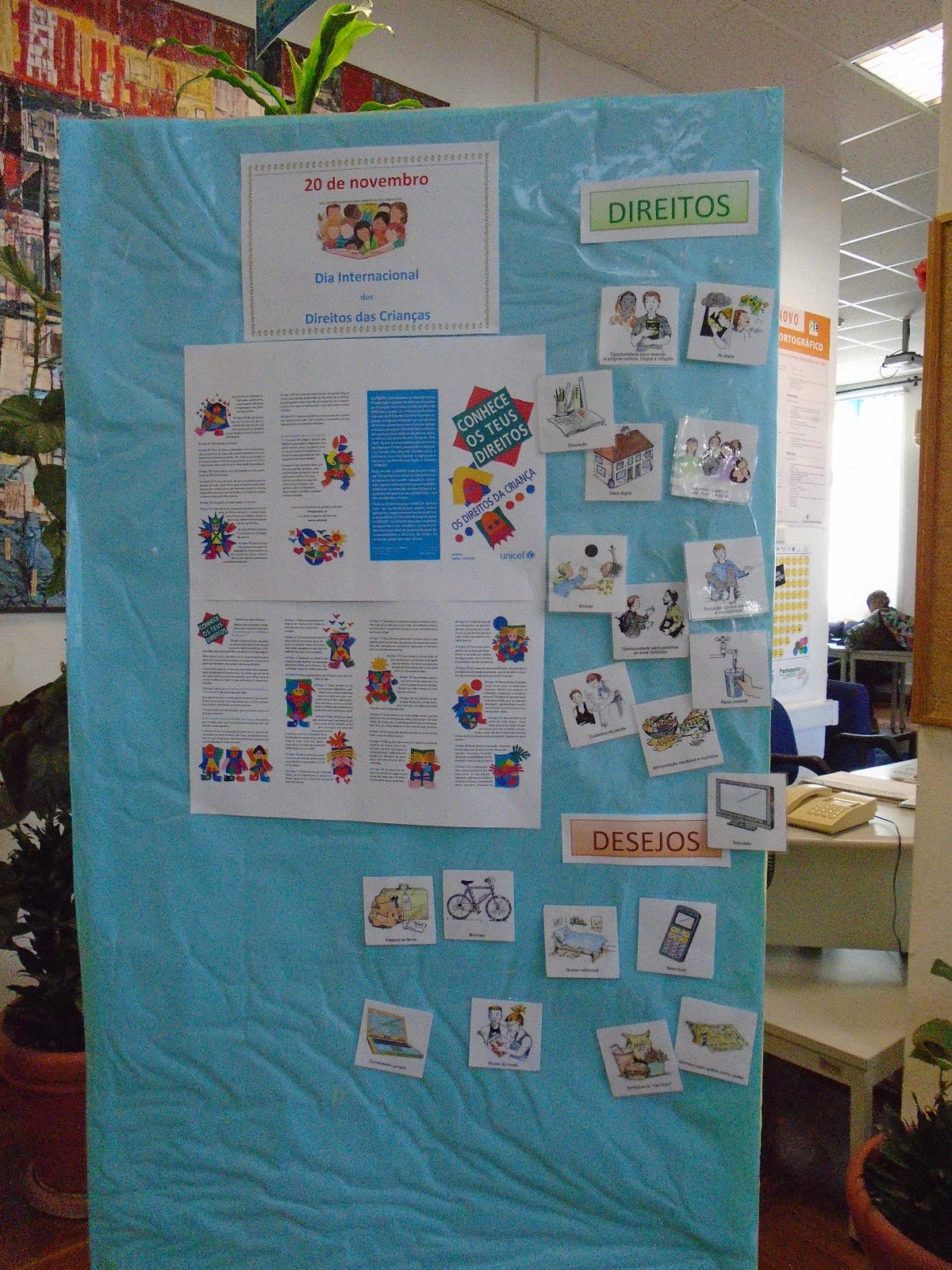 Numa das atividades propostas, os alunos selecionaram o que consideram Direitos e Desejos. Depois de uma discussão e reflexão com a professora de Educação para a Cidadania, o resultado foi este: